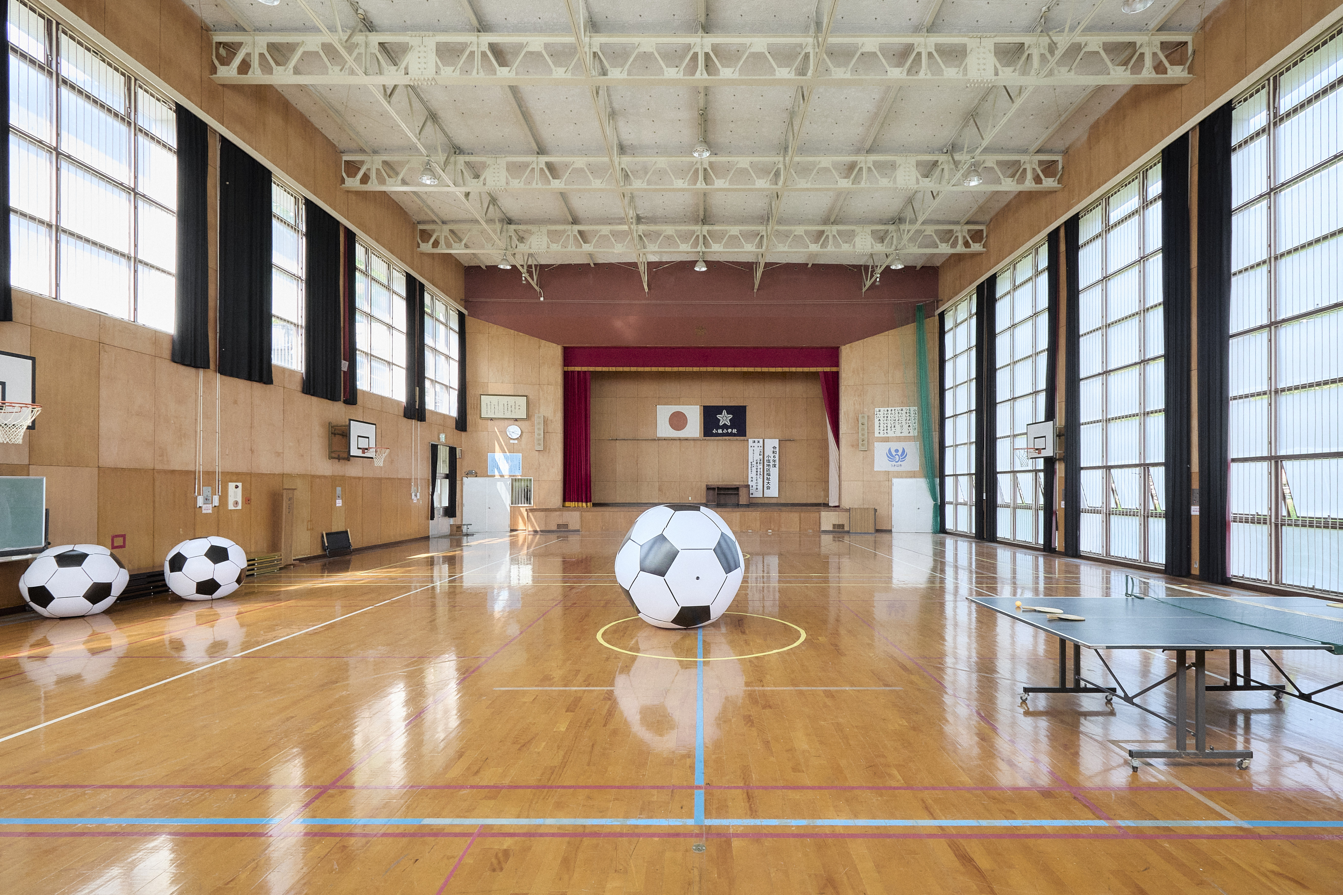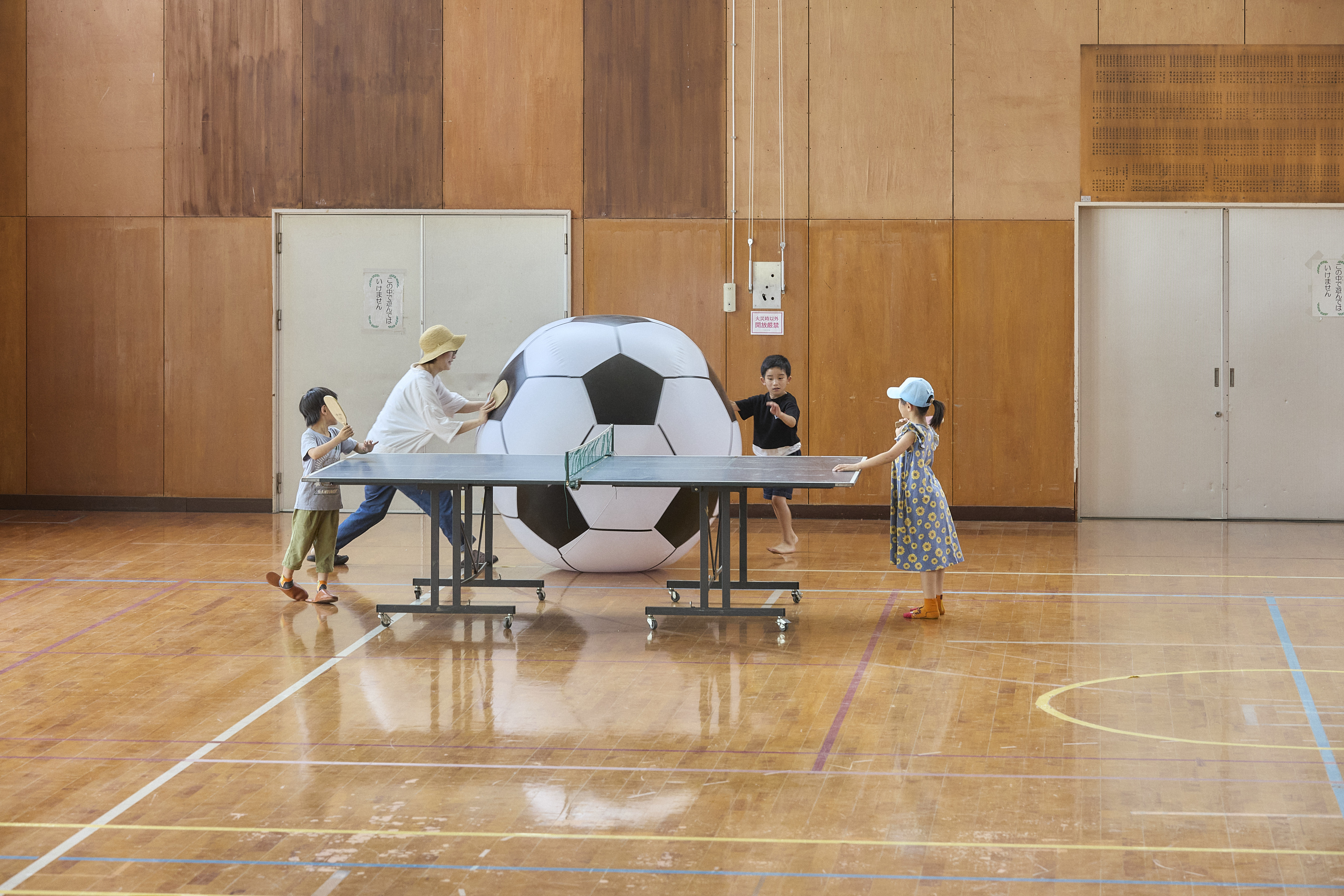 体育館には卓球台や巨大サッカーボールがあり、大人も子どもも思い切り大はしゃぎできますよ!