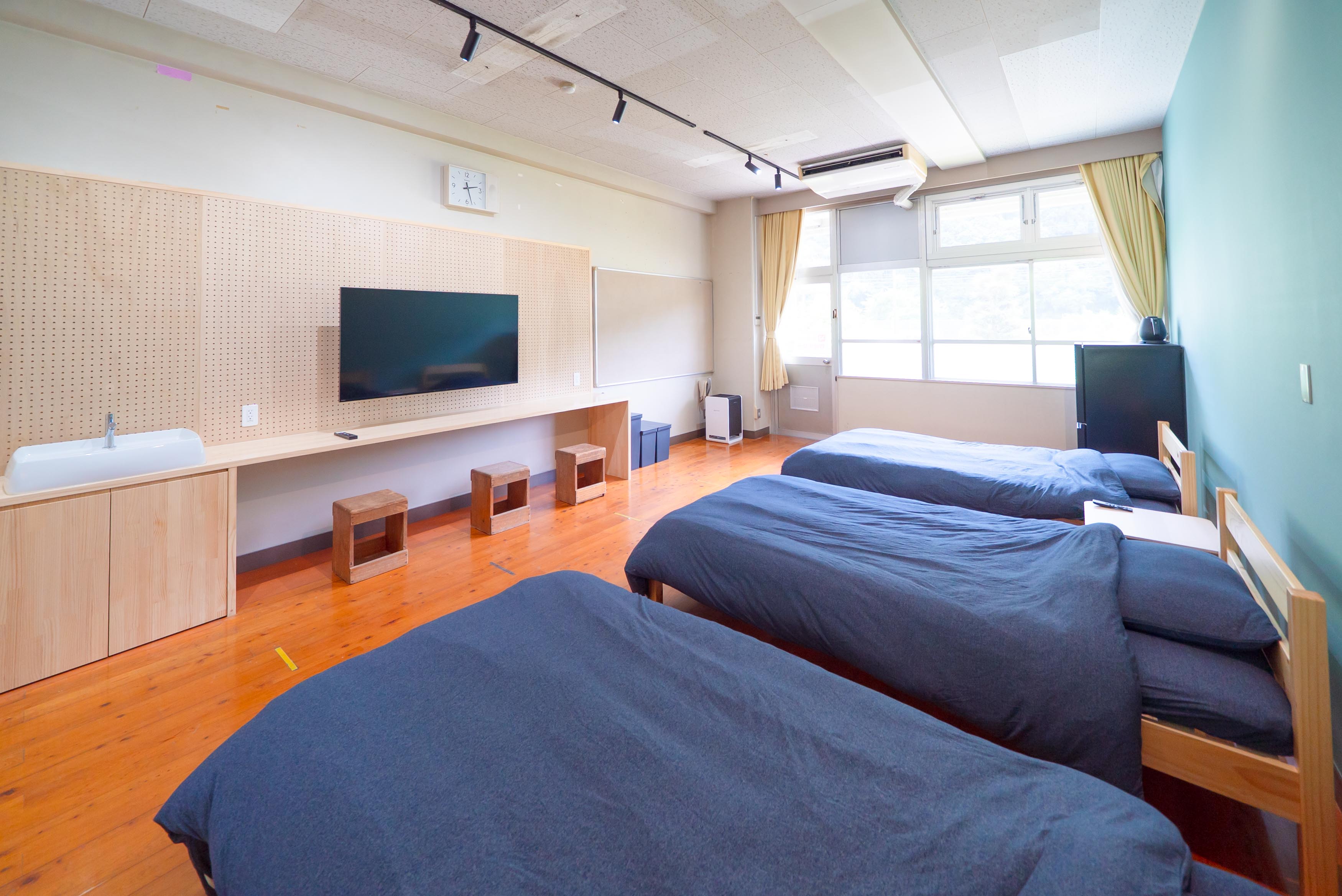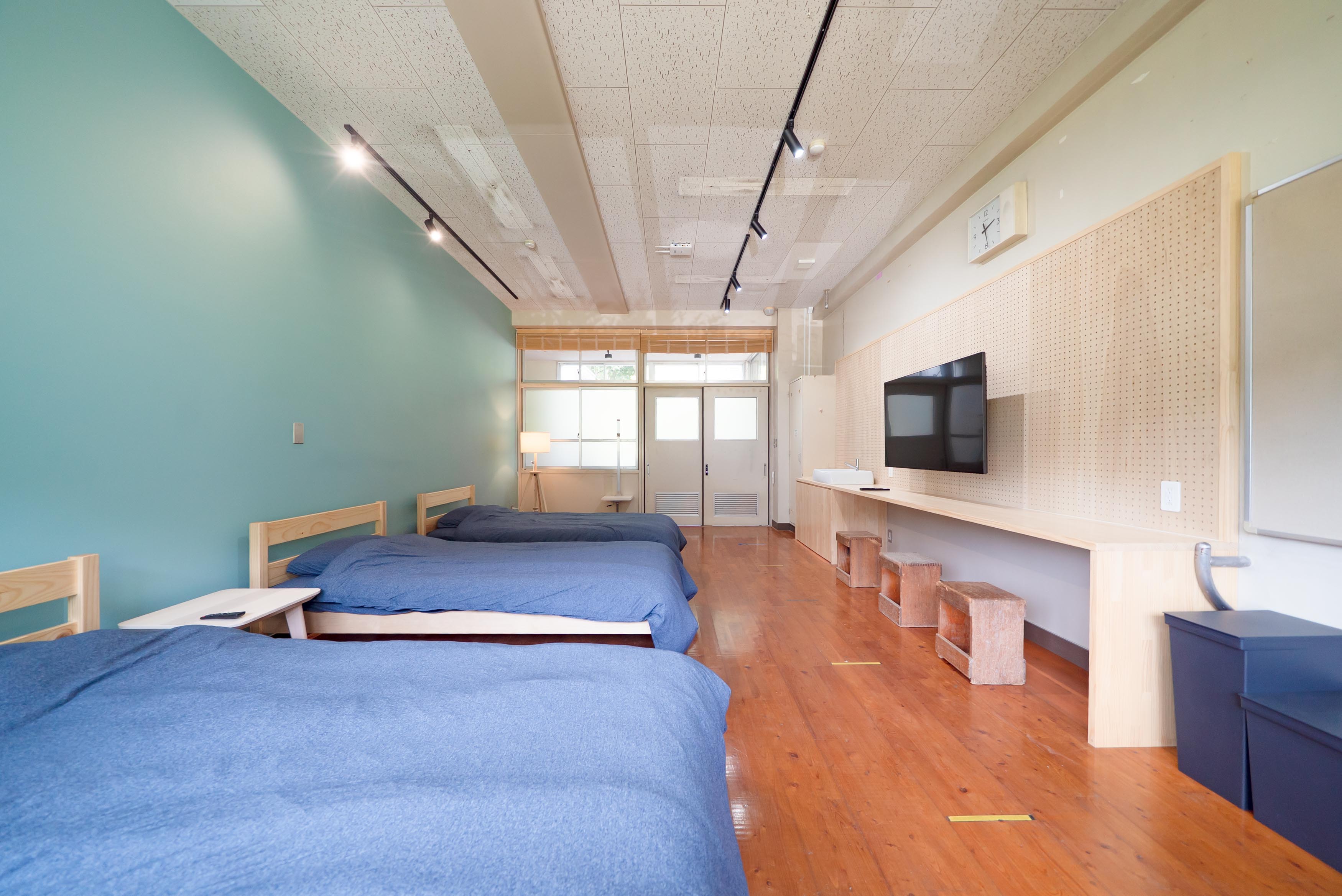 宿泊室は広々とした校舎に贅沢に2部屋だけ。