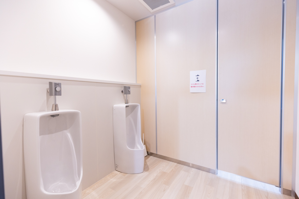 トイレはフルリニューアルし、シャワートイレとおむつ交換台が完備されています。男女別のシャワールームもあり、川遊びや運動場遊びで汚れても安心です。