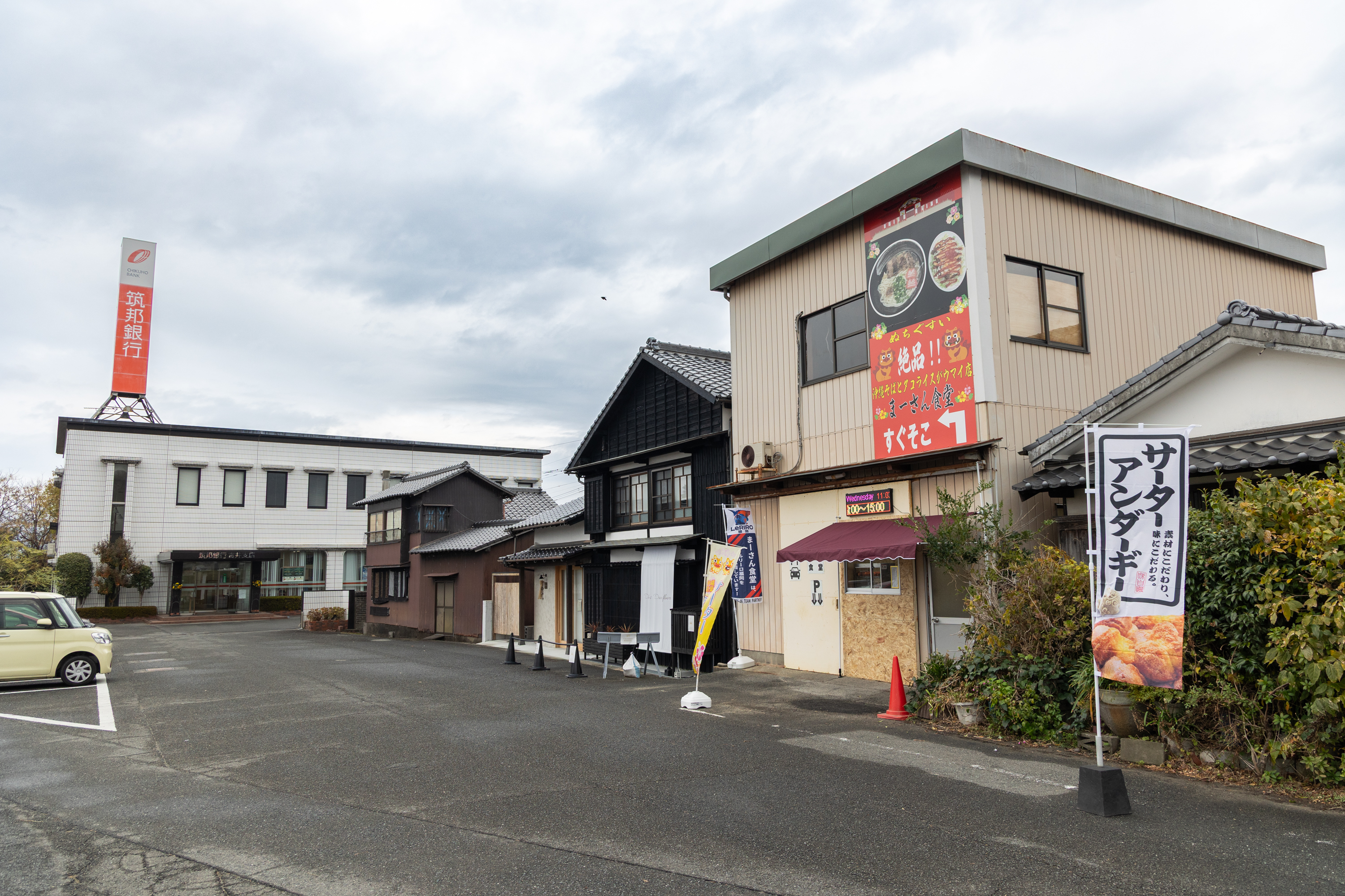 JR久大本線筑後吉井駅正面の道路を真っ直ぐ、てくてく歩いて約3〜4分。駐車場もしっかり完備されています。