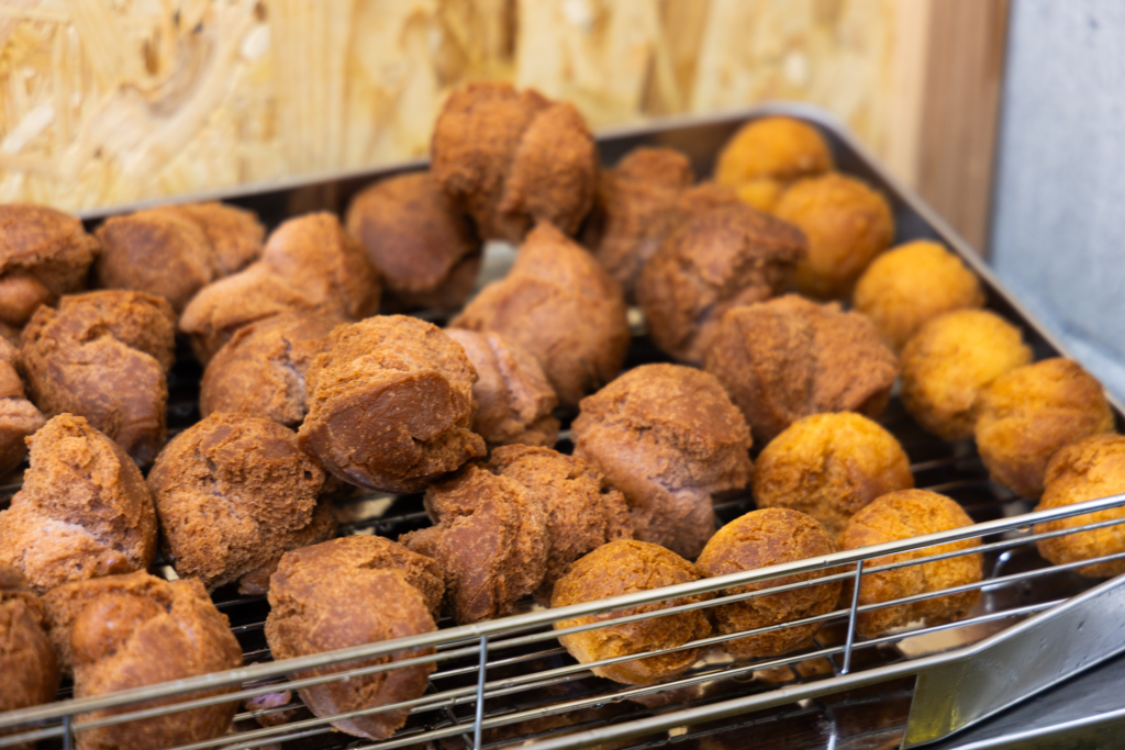 揚げたてサクサクの食感で、ひと口食べるとやさしい甘さと、どこか懐かしい味わいが広がります。