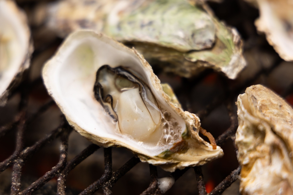 塩分濃度の少し高い橘湾で育った牡蠣は、何もつけずとも味が決まるのが特徴。