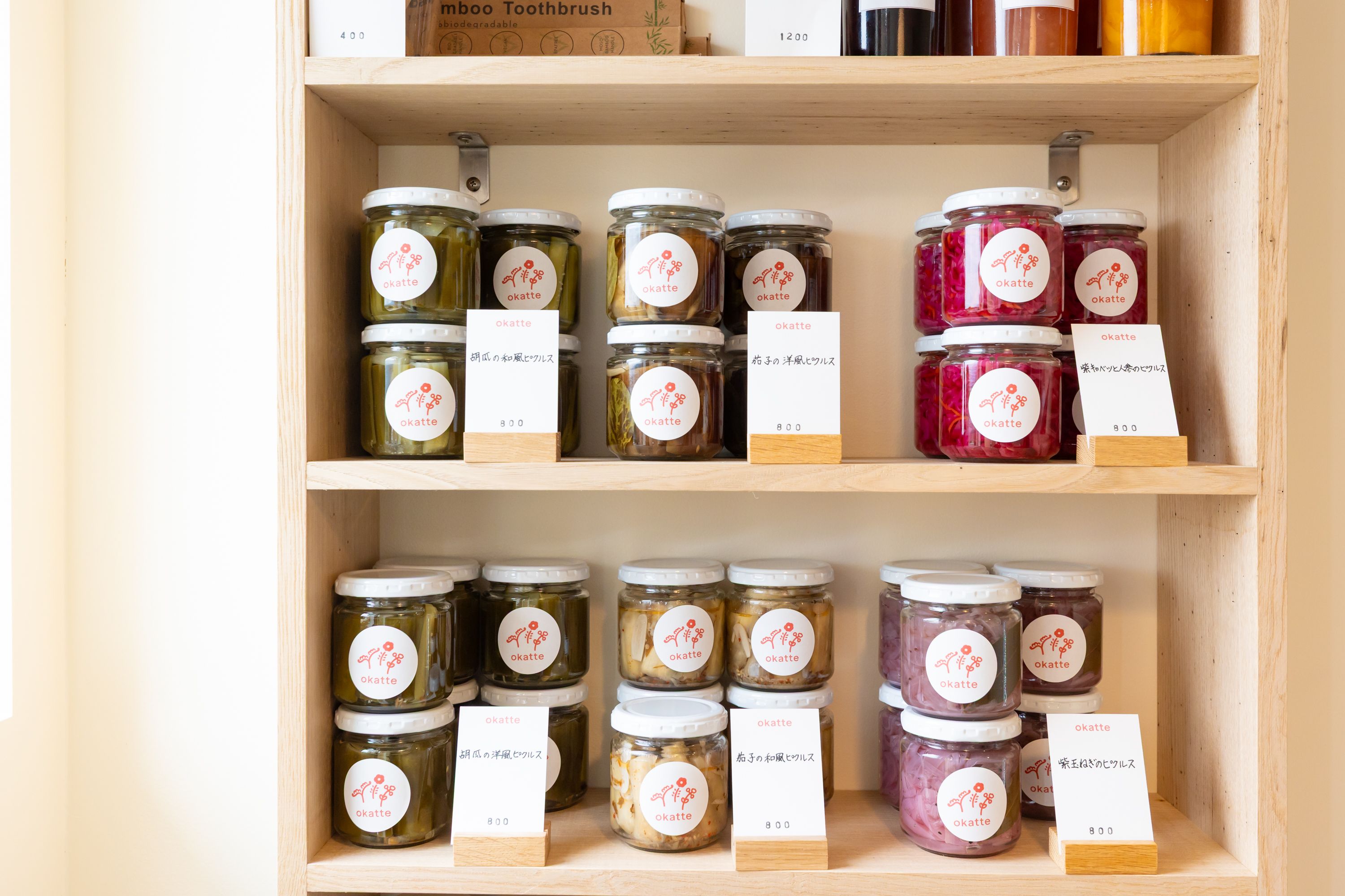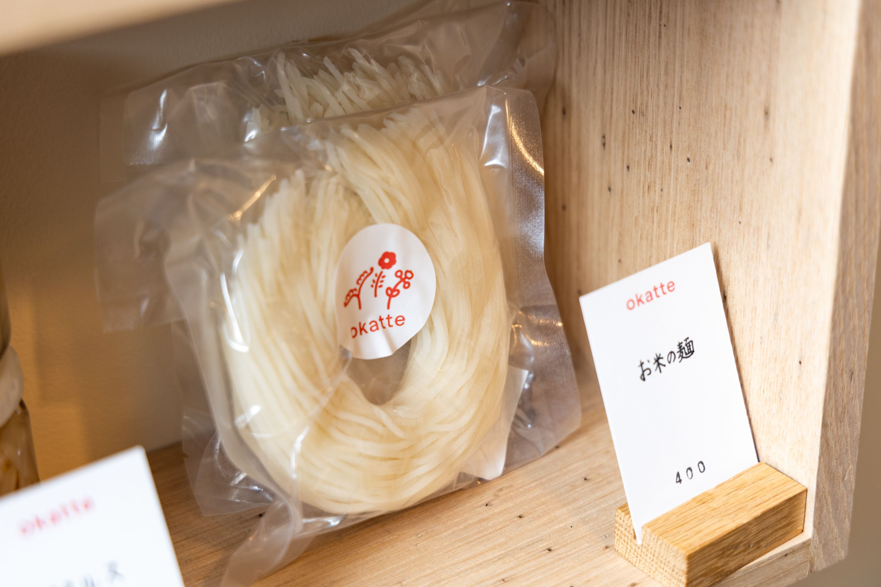 「okatte」には瓶詰めやお米で作った麺なども販売されています。