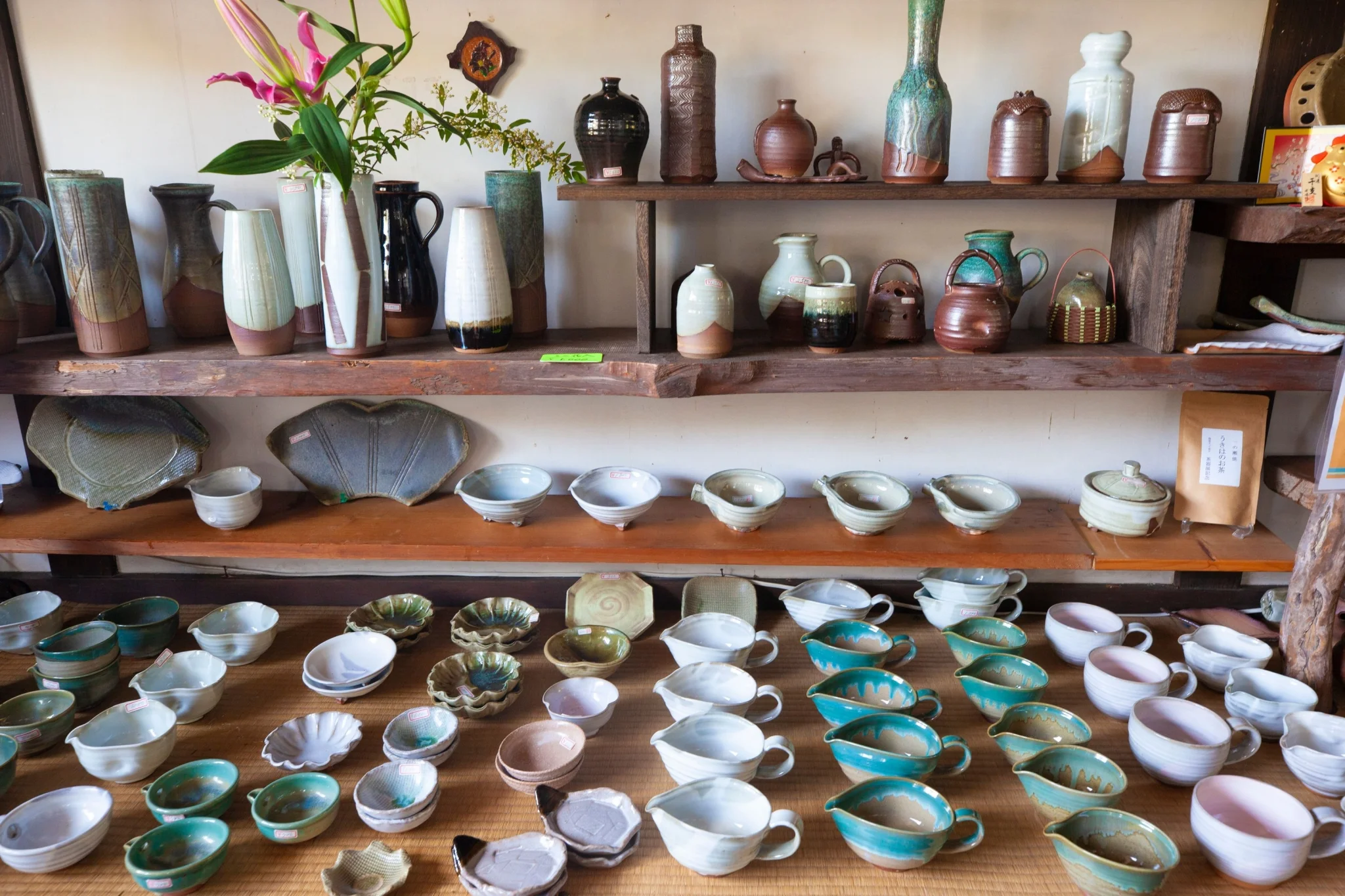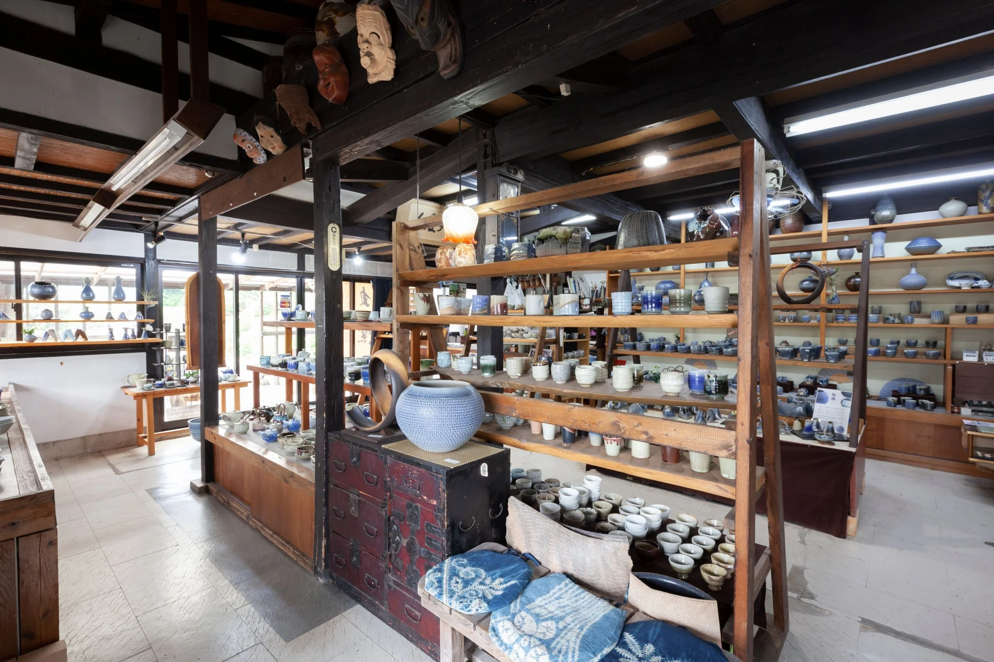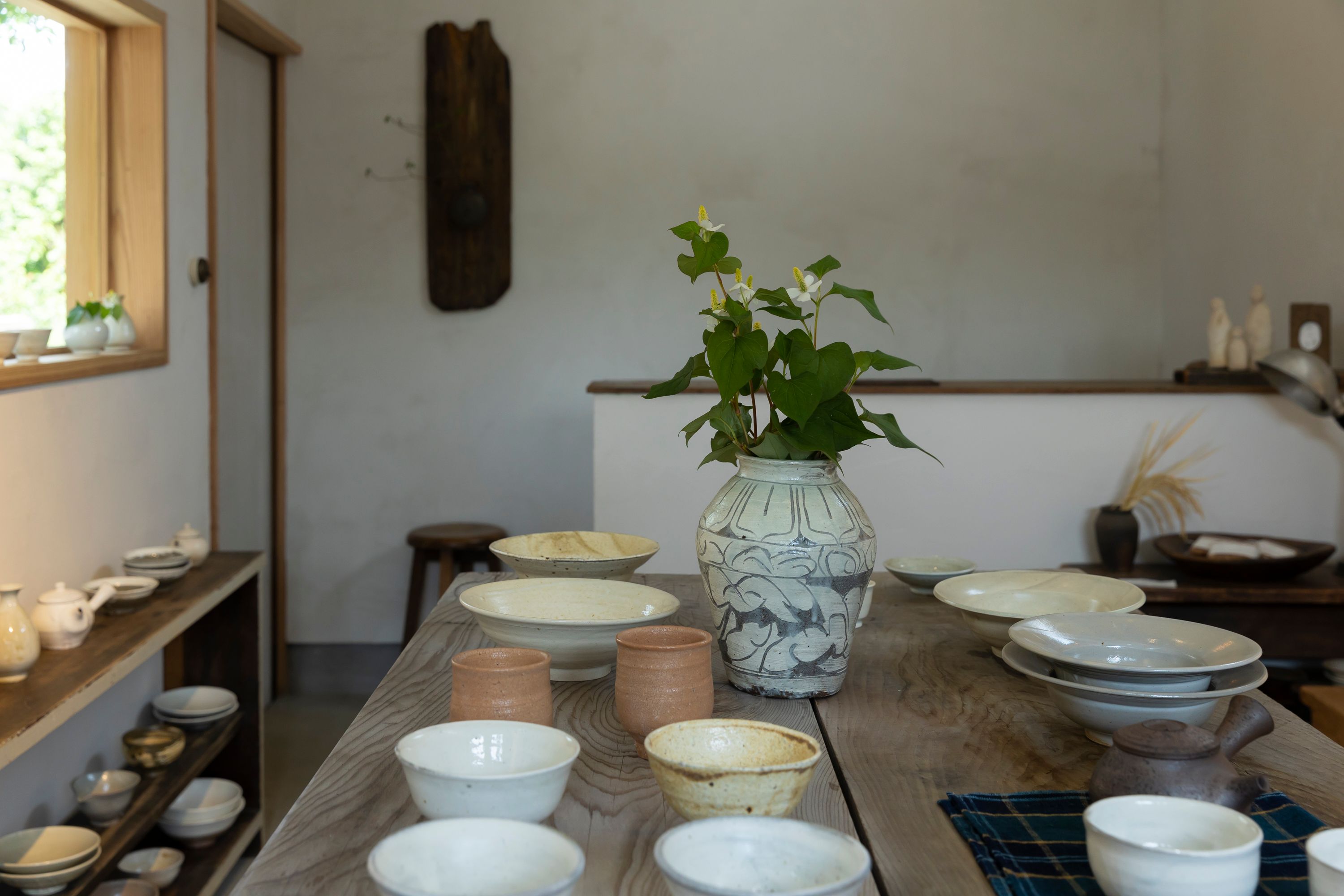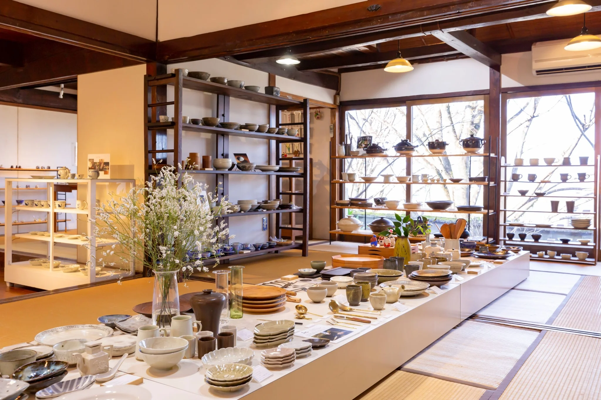 日本各地の作家による器や木工・漆・ガラスなど暮らしを彩る作品をセレクト。靴を脱いで上がる畳の和空間で、ゆったりと作品を眺め、手に取る時間が心地よく流れます。すべて一点もの。焼き色や形、質感の違いをじっくり味わえる器との一期一会を楽しんで。