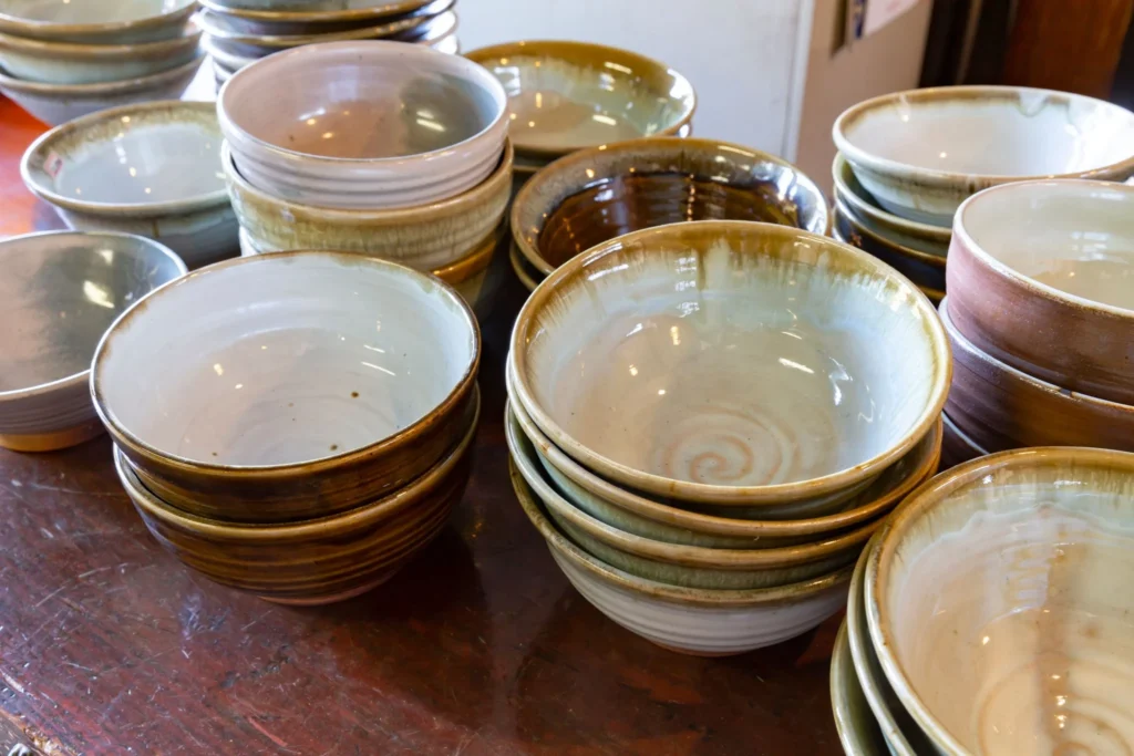 薪の炎と灰が織りなす“焼き締め”技法で、素朴ながら力強い表情を持つ器を生み出します。使うほどに愛着が深まる飲食器を中心に、シンプルでありながら現代の暮らしにも違和感なく溶け込む作品が揃います。工房では陶芸体験も可能で、土に触れながら自分だけの器を生み出す貴重な時間を過ごせますよ♪