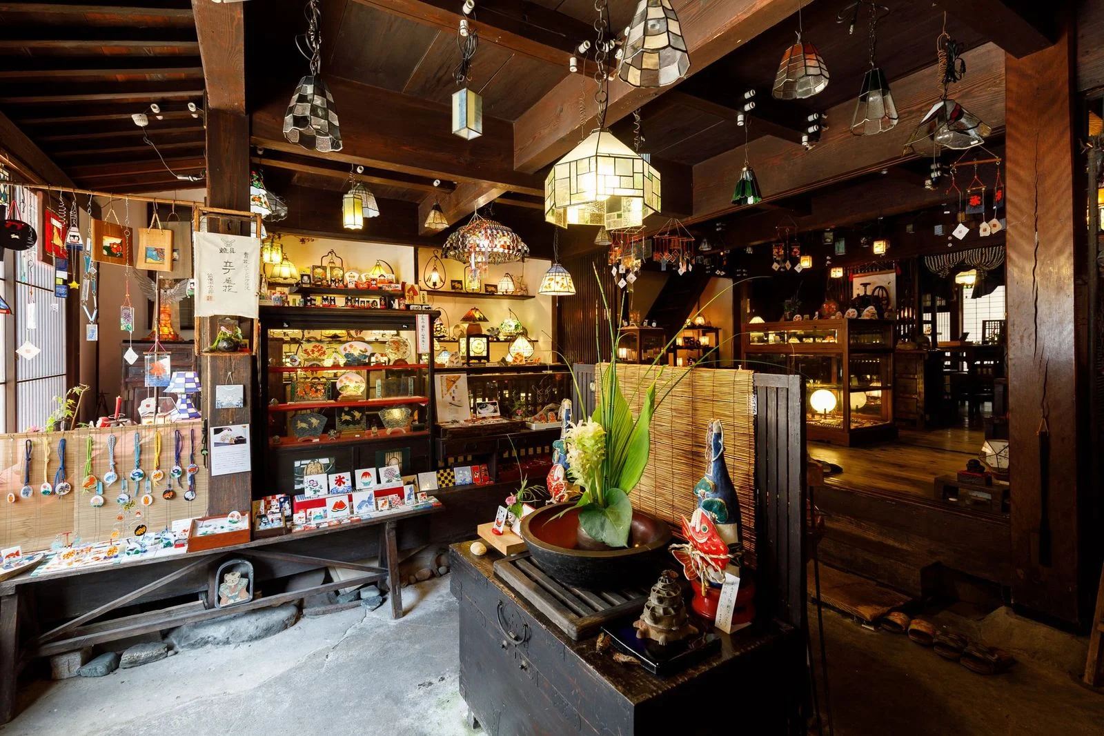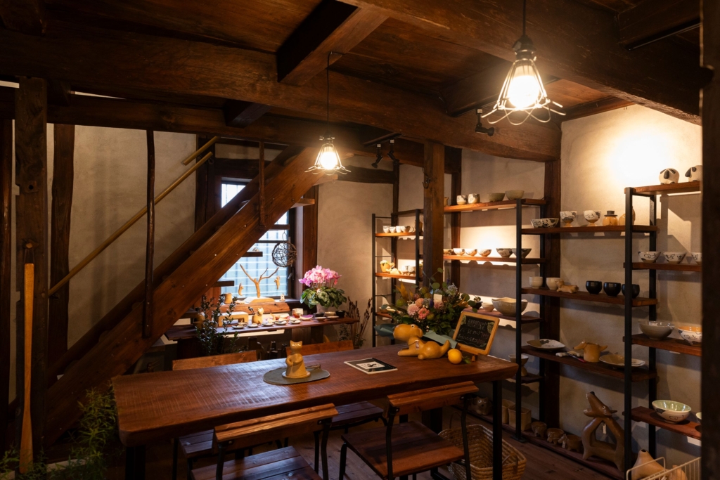 蔵を改装した落ち着きあるギャラリーで、作品の温もりと手仕事の美しさを間近に。庭先に飾られたオブジェもかわいらしく、訪れるだけで心が和みます。ギャラリー内にある蔵茶房では、タピオカ粉を使った手作りスイーツやドリンクなど、カフェも楽しめますよ♪