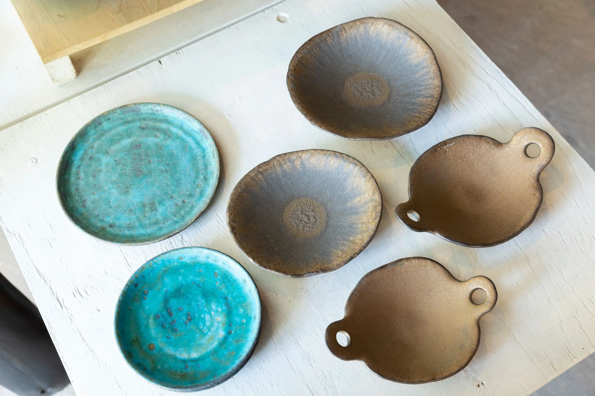 灰釉・鉄釉・銅釉・辰砂釉・そば釉・織部釉などを用い、独自調合の多彩な釉薬で“使い込むほどに味わい深くなる”器を制作しています。ひとつひとつ異なる表情を見せる器たちは、シンプルでありながらも奥行きを感じさせ、日常を彩る名脇役として暮らしに寄り添います。静かな工房には職人の手仕事の息遣いが漂い、作品を手に取る時間そのものが贅沢な体験となる場所です。