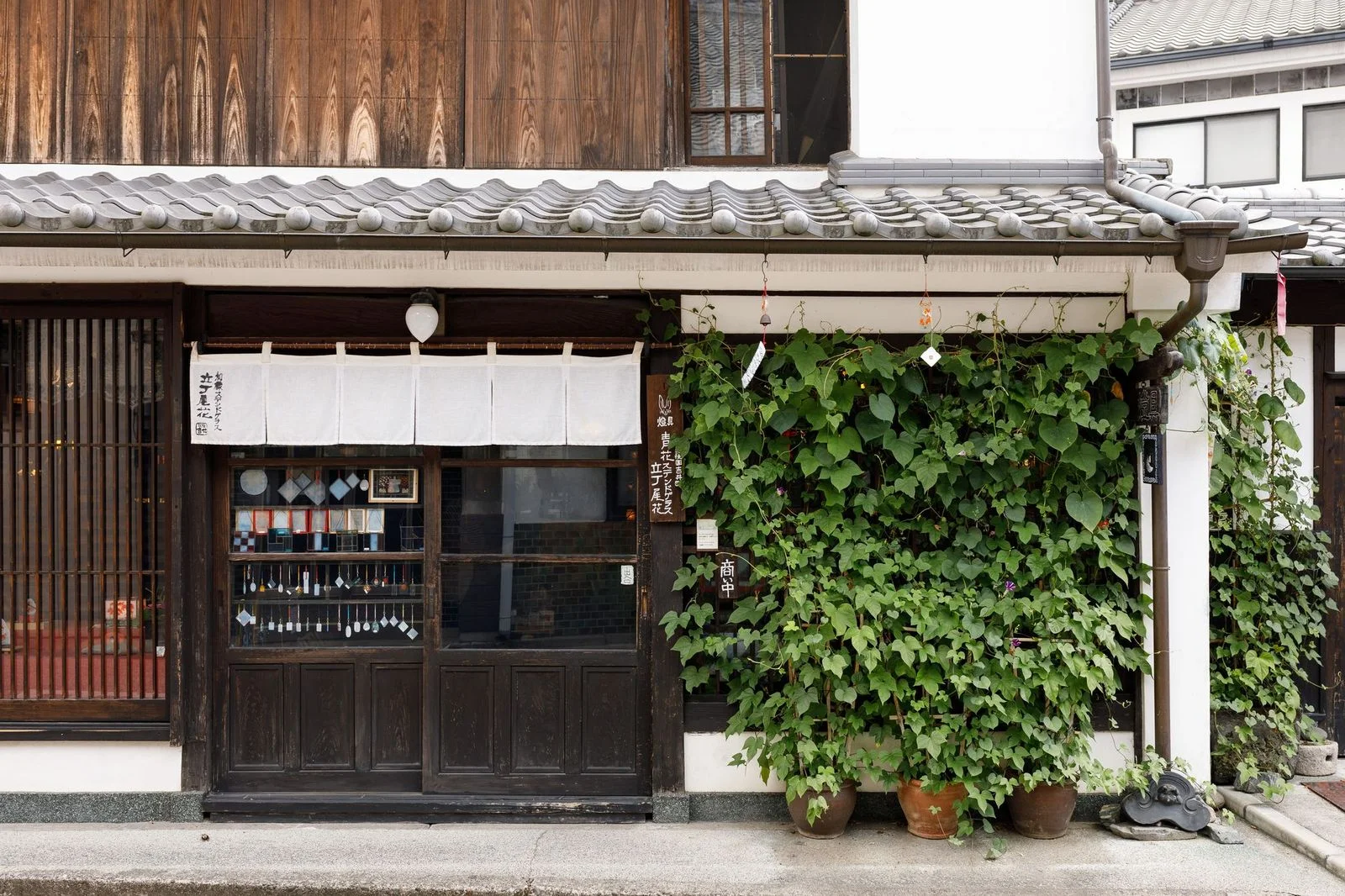 築150年を超える古民家に灯る、尾花光昭さんの繊細なステンドグラス作品。“暮らしに気軽に取り入れてほしい”という想いから、ランプやタイル、アクセサリーまで幅広く展開。特に“青花ステンドグラス”という、陶器の“青”と一体化するように絵付けをほどこす独自技法は、見れば見るほど心惹かれます。