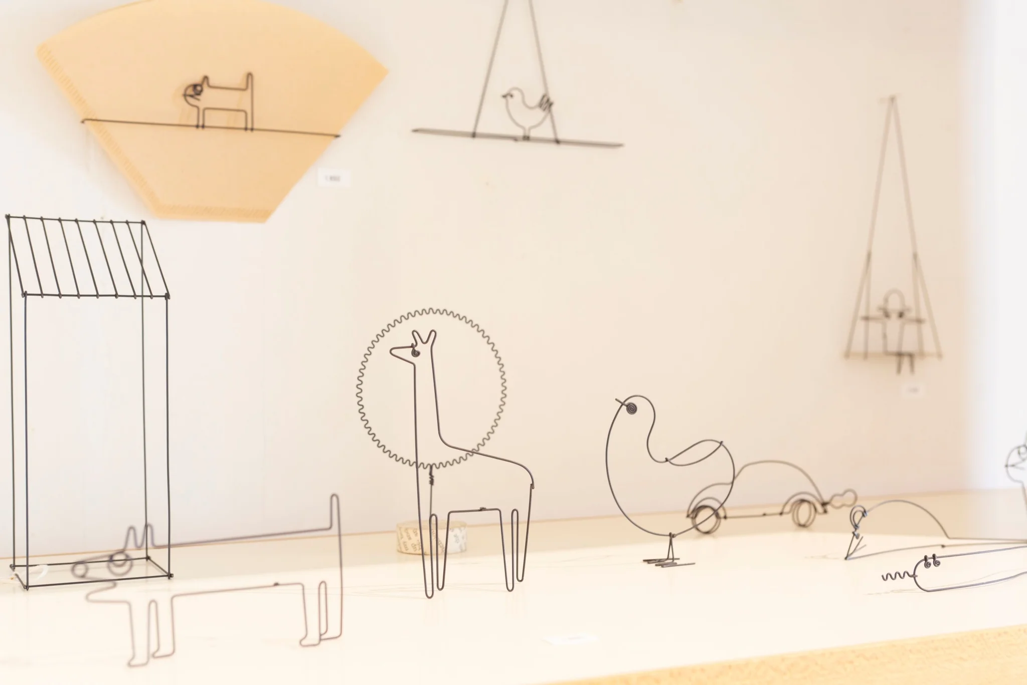 昭和時代の歯科医院をリノベーションした白亜の建物が、静かな路地にしっとりと佇む、ワイヤーアート作家・関昌生さんのアトリエ兼ギャラリー。一本の線から生まれる繊細な立体表現を間近に楽しめます。柔らかな光に包まれたギャラリーには、関さん作品のほか親しい作家の作品やセレクト雑貨も並びます。