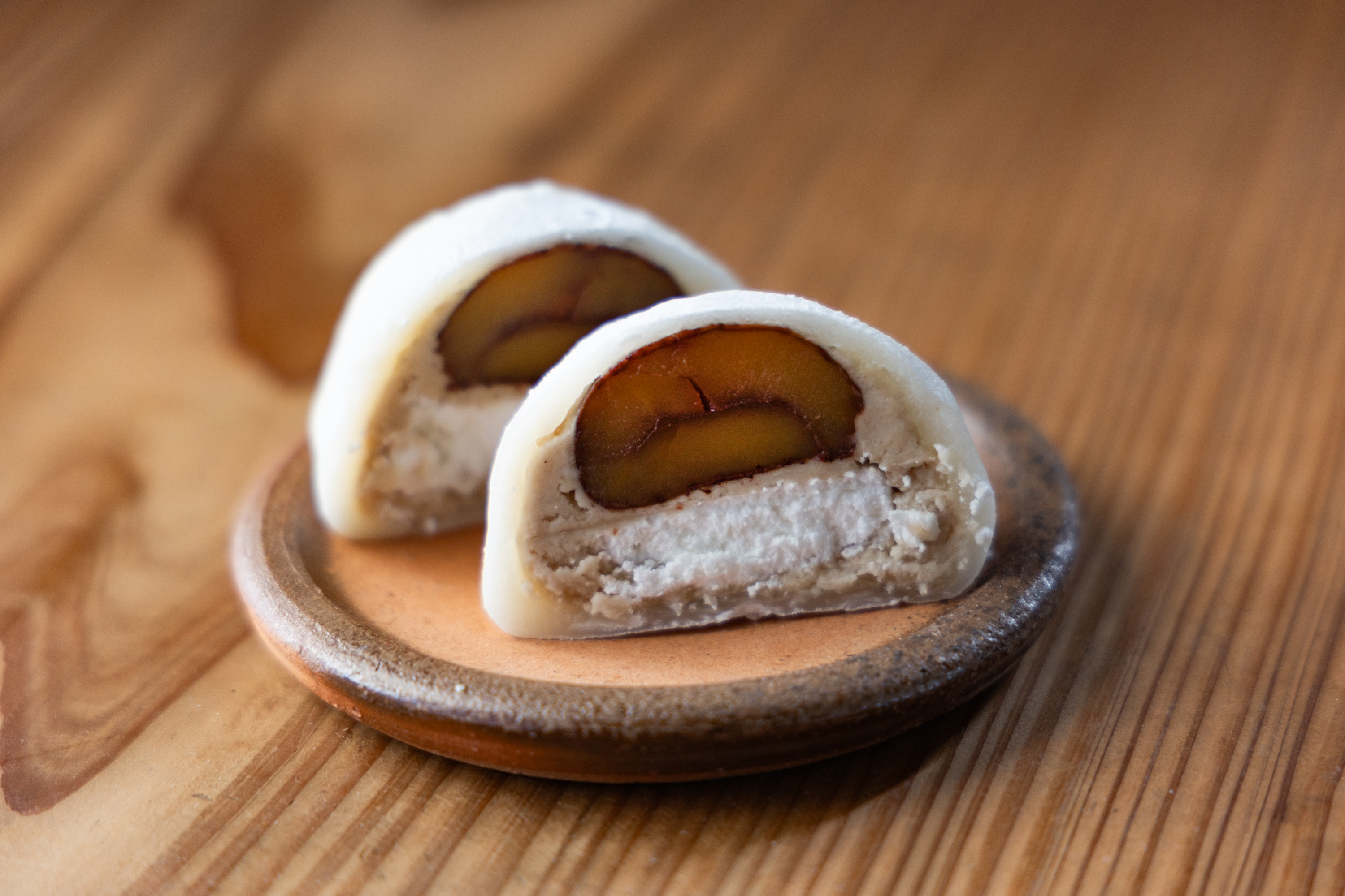 ふわふわの生地のどら焼きが人気のキチココ。毎年この時期はプレミアム和栗が人気です。ふわふわのどら生地の間にはマロンクリームとキチココの美味しい生クリームにごろっと一粒の栗が入っててとっても美味しい!どら焼き職人にこだわりまくって注文したという渾身の逸品ですのでぜひお見逃しなく〜