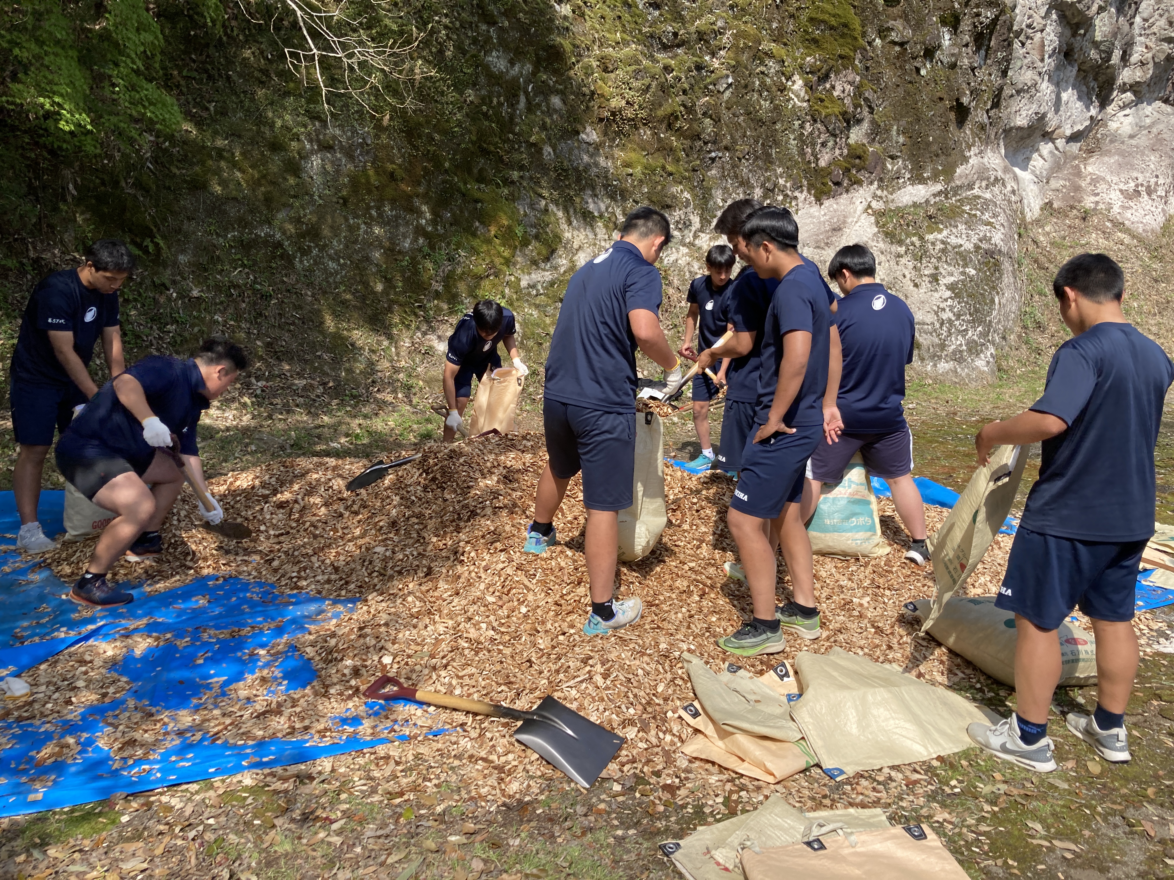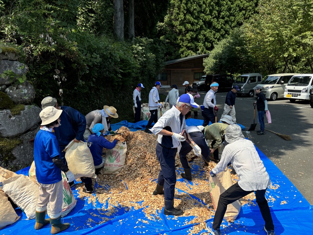 【作業内容】木チップ撒き、袋詰め、看板清掃など