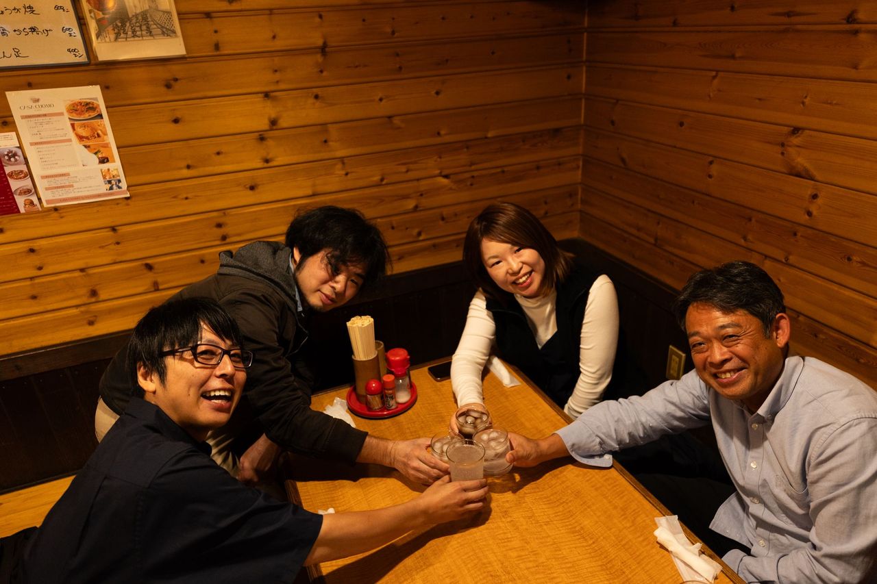 編集部メンバーでワイワイとおしゃべりしながら、楽しい夜のはじまりです。