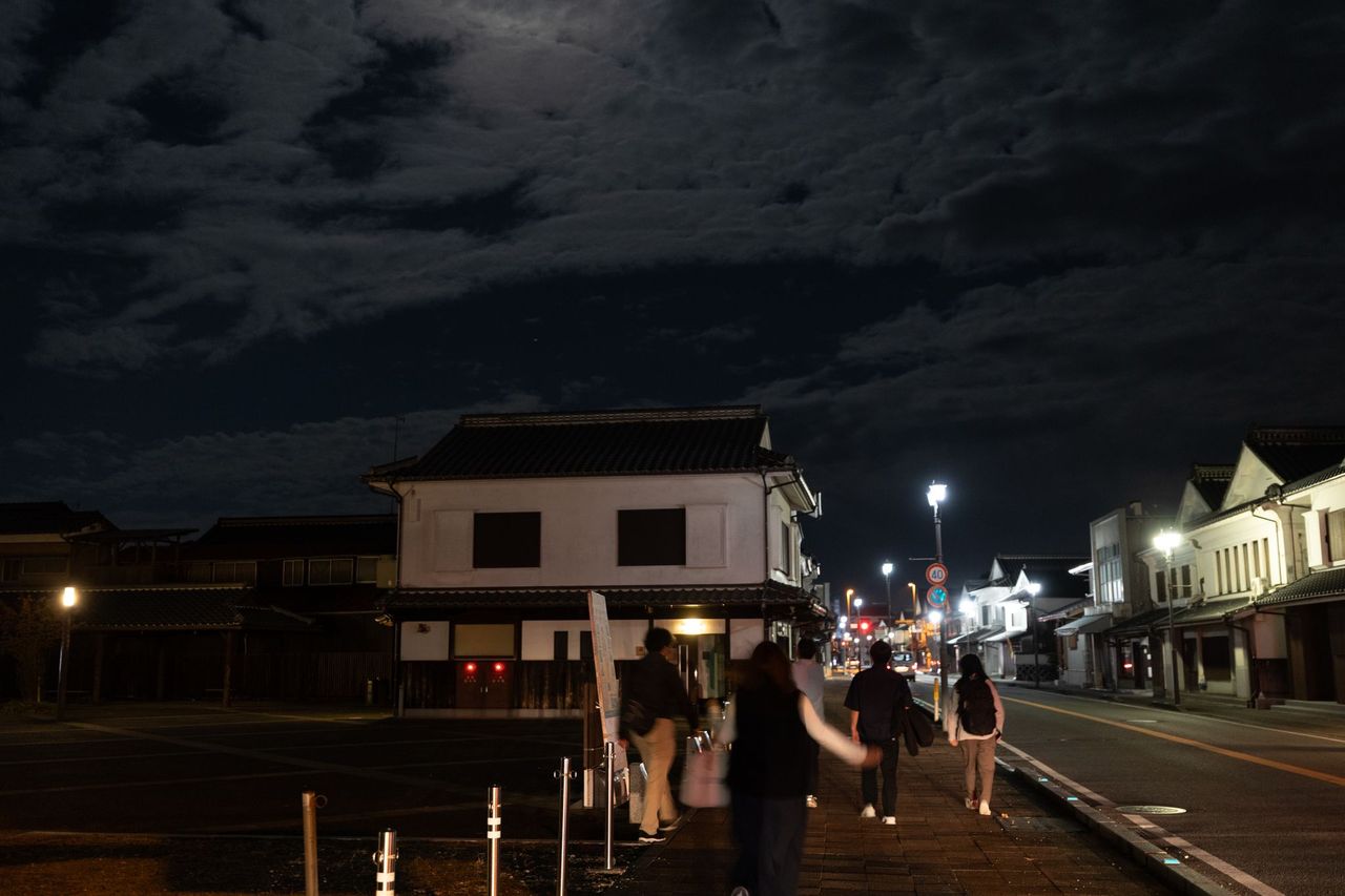 白壁のまち並みに灯りがともり、地元の人や旅人が集うあたたかな空気に。