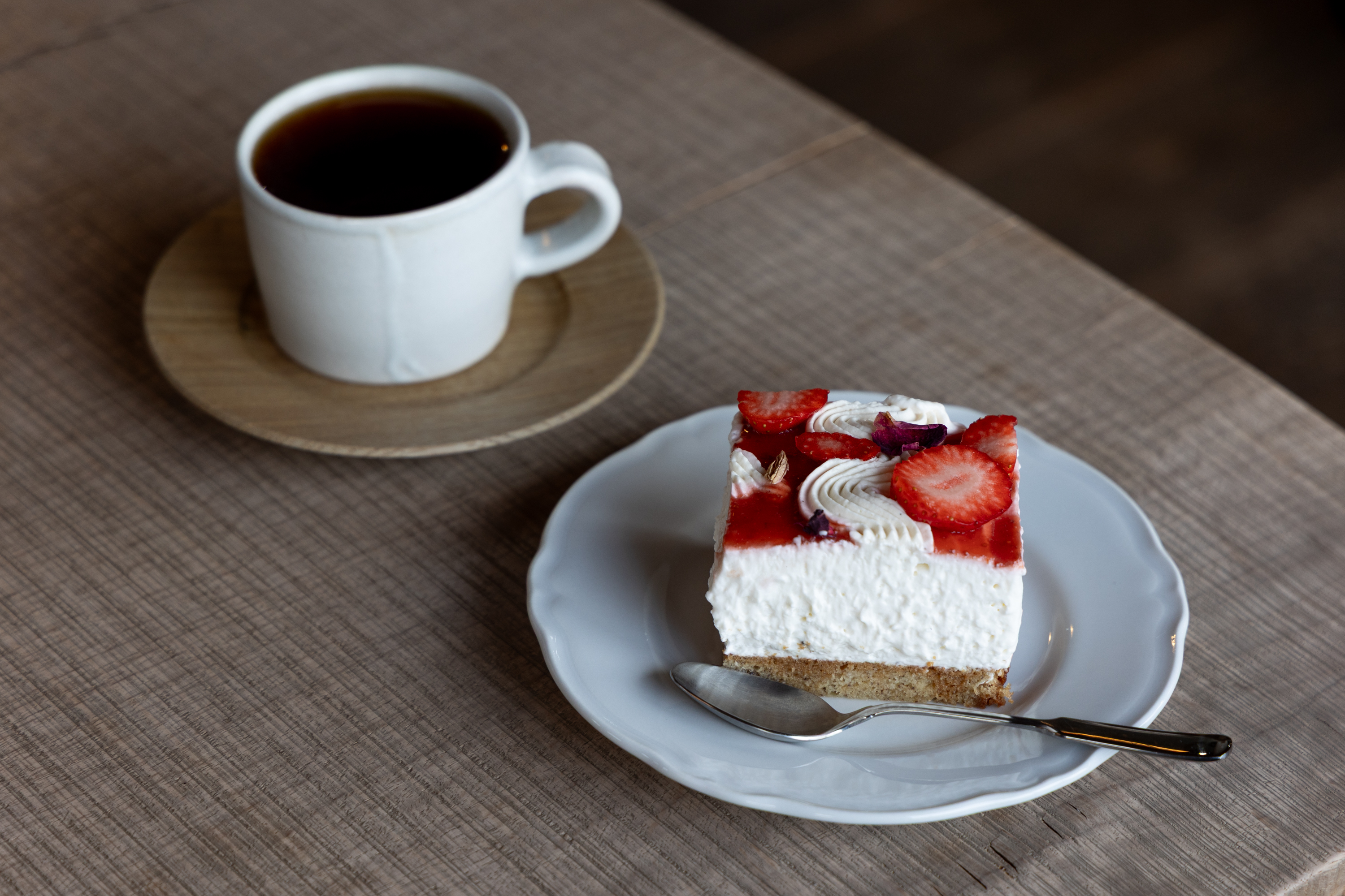 木の道具と喫茶のお店jingoro定番のチーズケーキやガトーショコラに加え季節のデザートが大人気です。あまおう苺のティラミスはマイナーチェンジをくりかえしながら見た目も美味しさも進化しています。そのこだわりには脱帽です。とろけるクリームにうきは産の苺の甘酸っぱさ、なんとも風味豊かなスポンジ生地に時折感じるハーブ感がたまらない魅惑のスイーツです。コーヒーを合わせるのもいいですがおすすめはネパールブラックティー。程よい渋みと甘み深い味わいがとても合います。イートインは予約制なので予約方法などはお店のインスタグラムでご確認を。