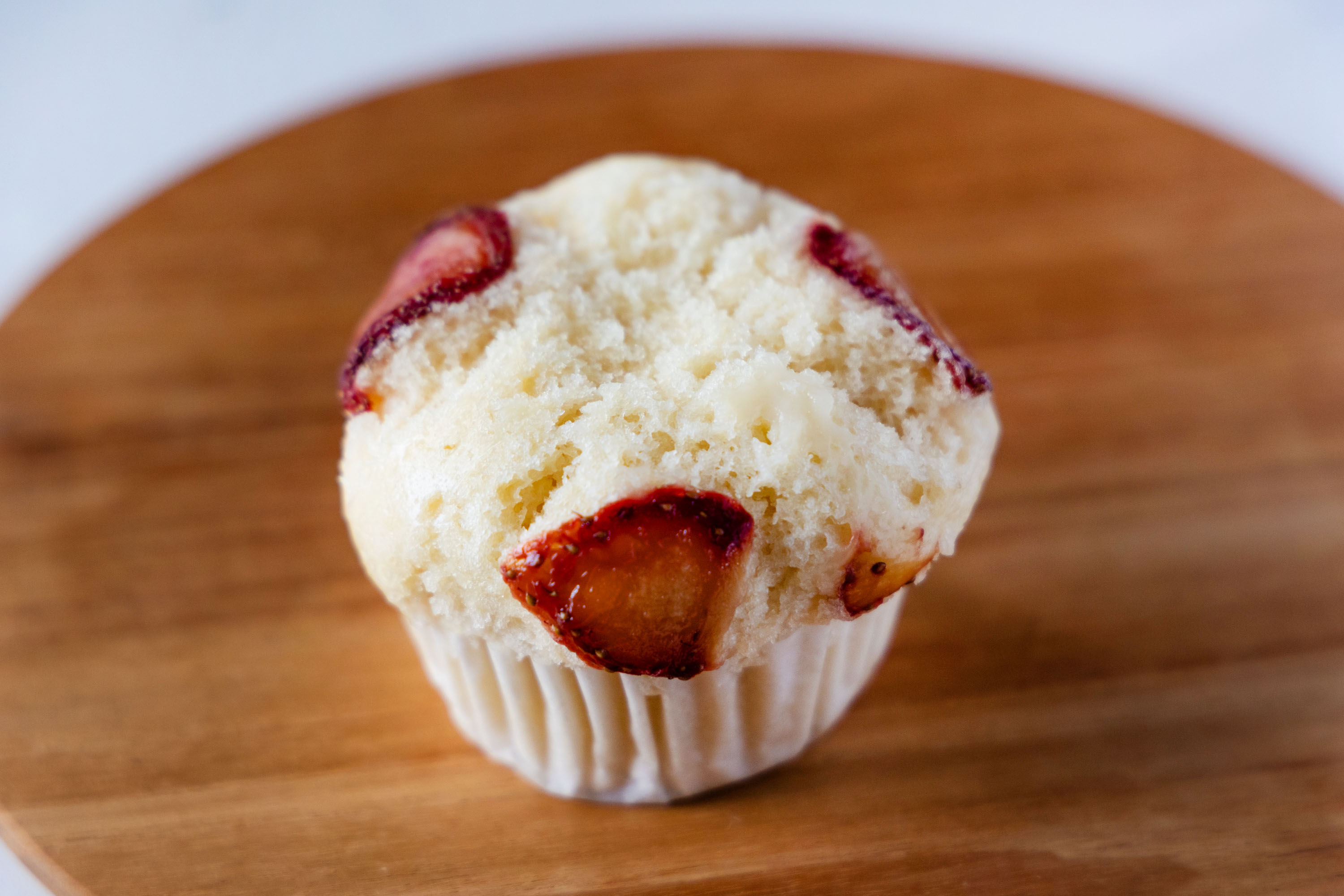 耳納の里やイベントでしか購入できない大人気のまるっこ蒸しパンに苺チーズが。白いふわふわ蒸しパンに赤い苺がのって見た目も可愛い〜。安心して食べられるほっこりする優しい蒸しパンです。苺の甘酸っぱさとクリームチーズが合います。早めに売り切れることもあるので気になる方はお早めに耳納の里へ。