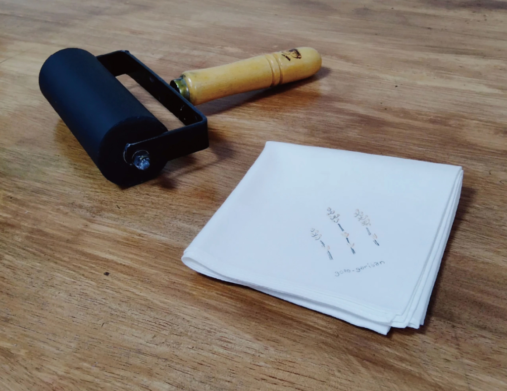 オリジナルのハンカチとポストカードを手刷りで印刷します。 明治時代の建物で心落ち着くものづくりのひとときを過ごしませんか?