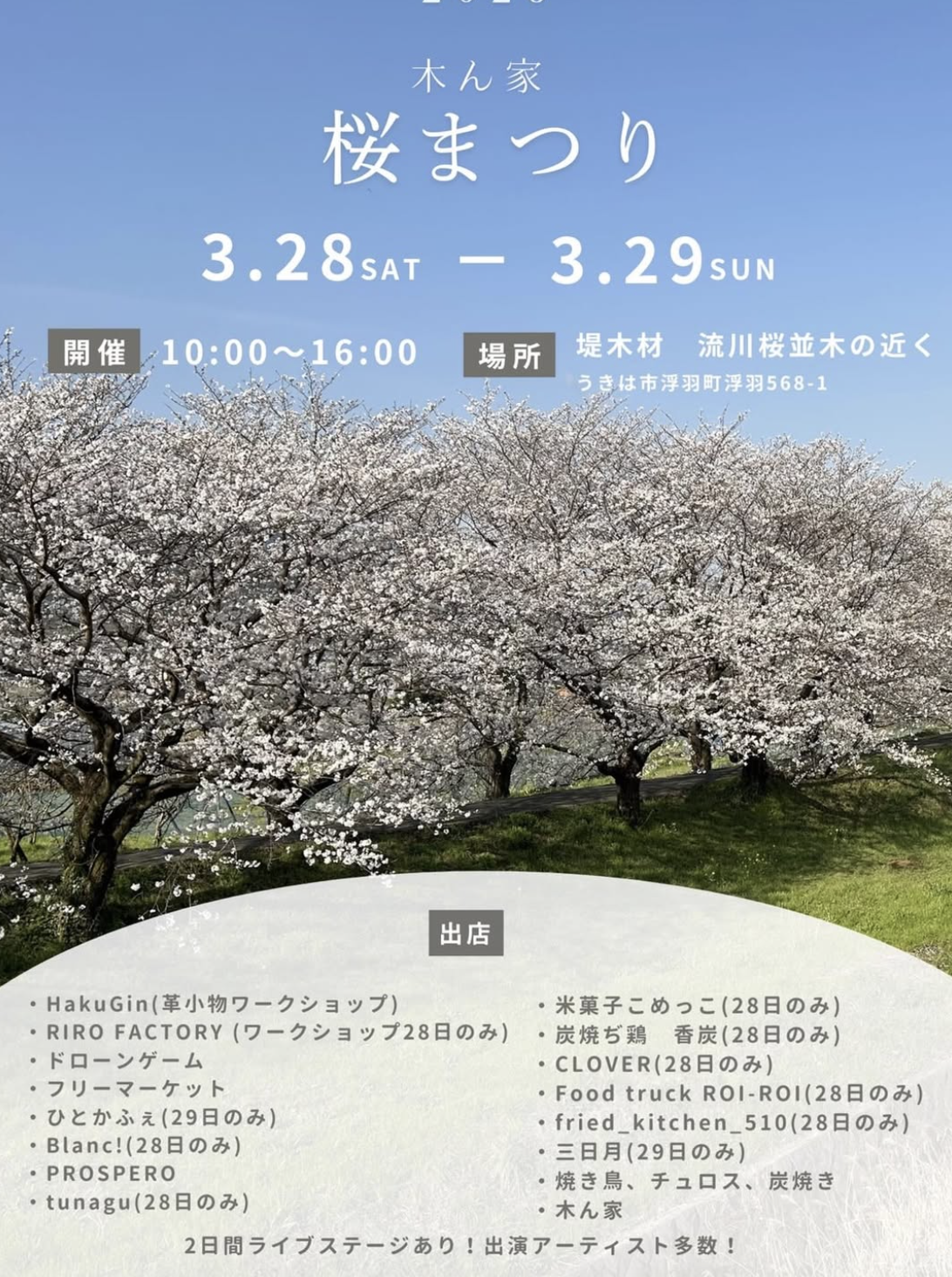 満開の桜の下で楽しめるライブステージは、今年も両日開催♪