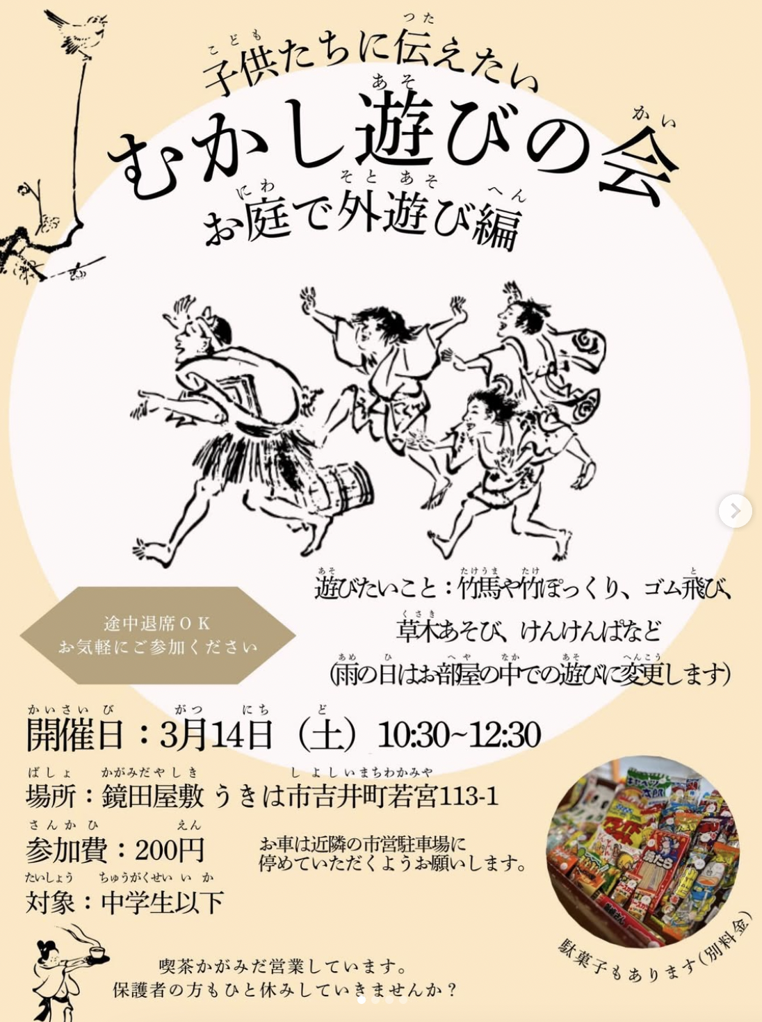 ”古き良きむかしの遊びを鏡田屋敷のお庭で一緒に楽しみませんか?
