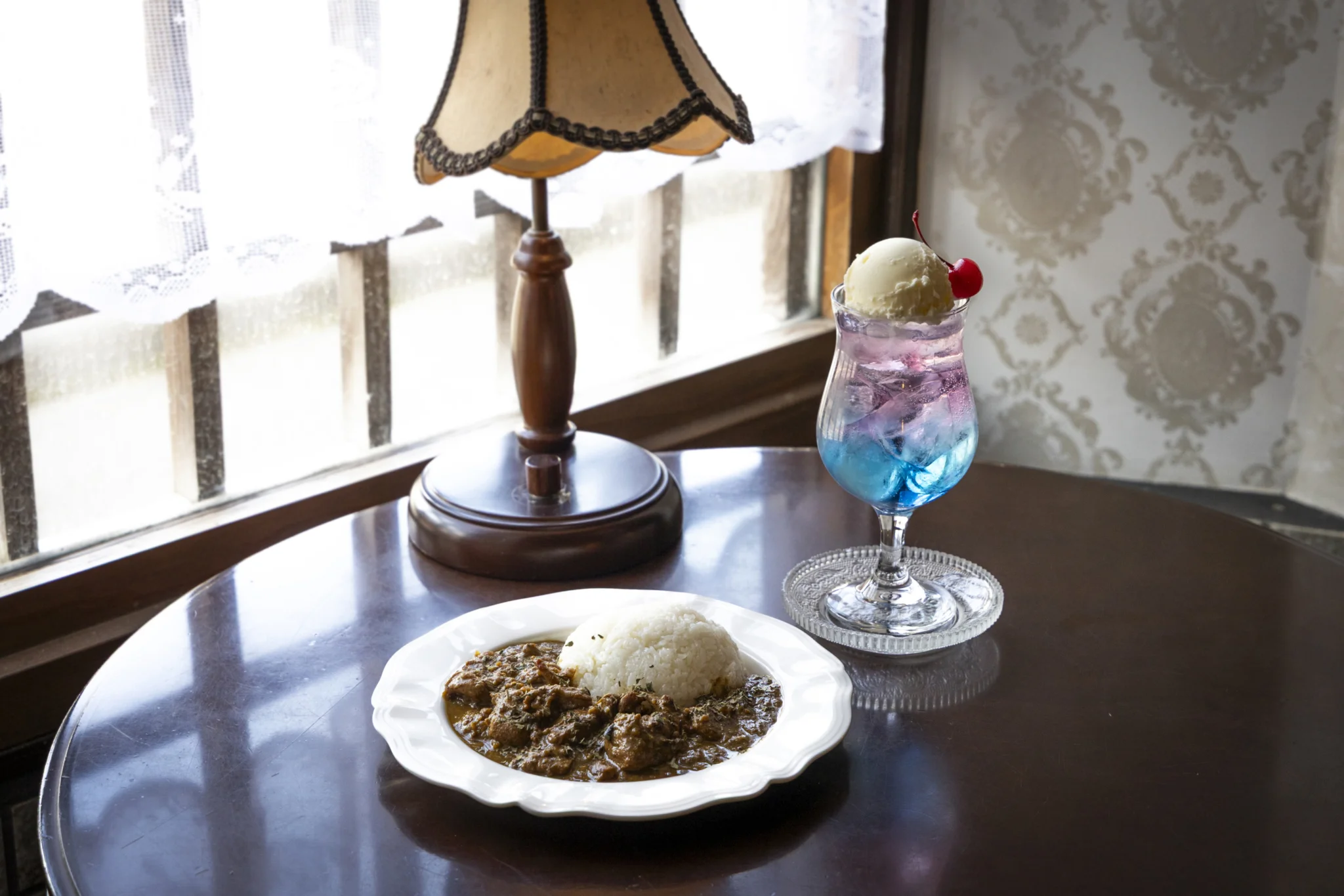 築100年の古民家をリノベーションした大正ロマン漂う空間で、スパイス香るチキンカレーやクラシカルなプリンを楽しめます。季節のフルーツを使った、色鮮やかなクリームソーダも人気。ゆったりと時間が流れる空間で、少し特別な喫茶時間を過ごせる一軒です。