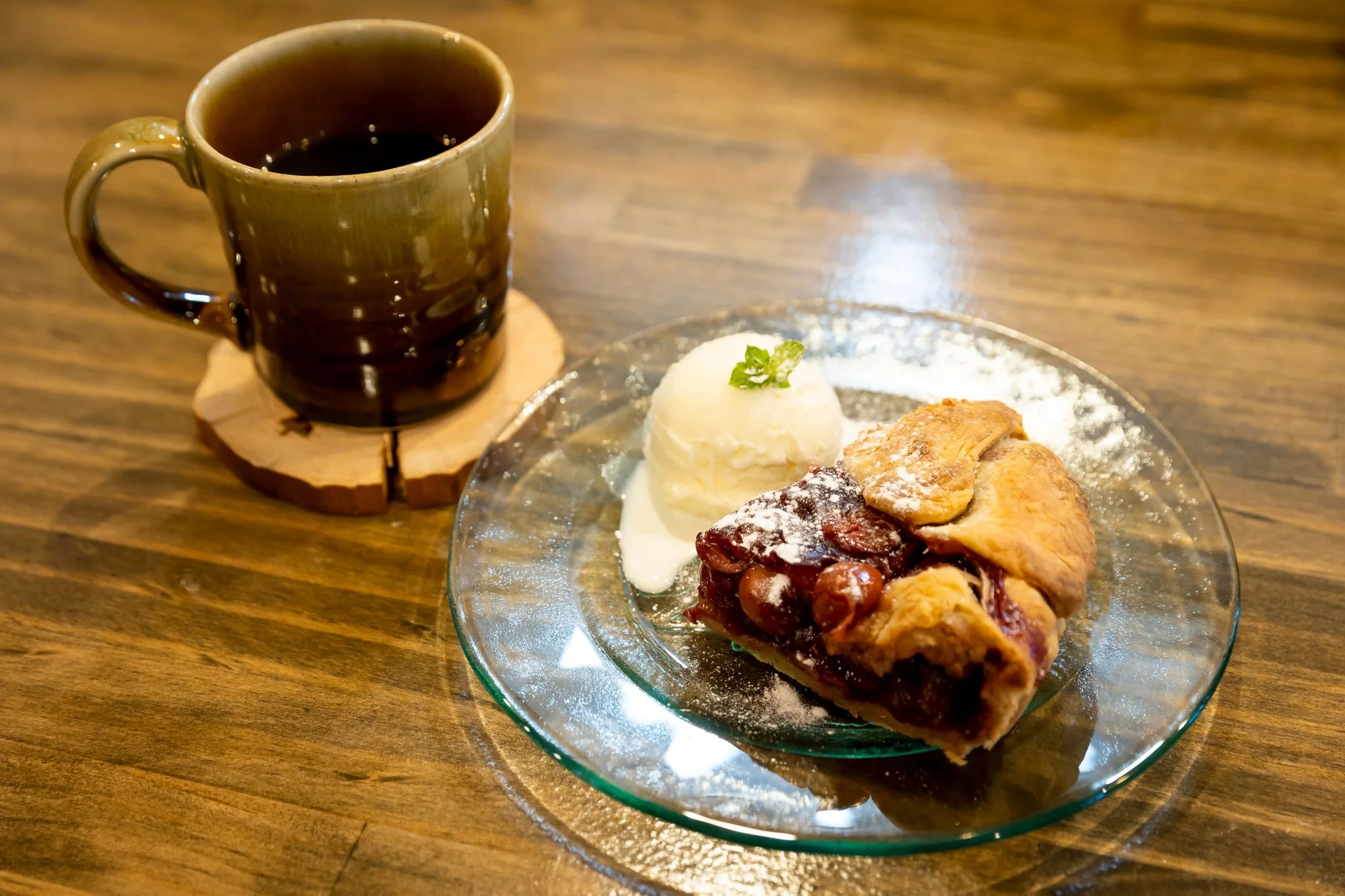 サクサクのクリスピー生地に具材たっぷりの“古代のピザ”や、甘酸っぱい特製チェリーパイが人気です。サイフォンで丁寧に淹れるコーヒーと一緒に、どこか懐かしい喫茶店時間を楽しめます。レトロで落ち着いた空間で、ほっとひと息つけるうきはの名店です。