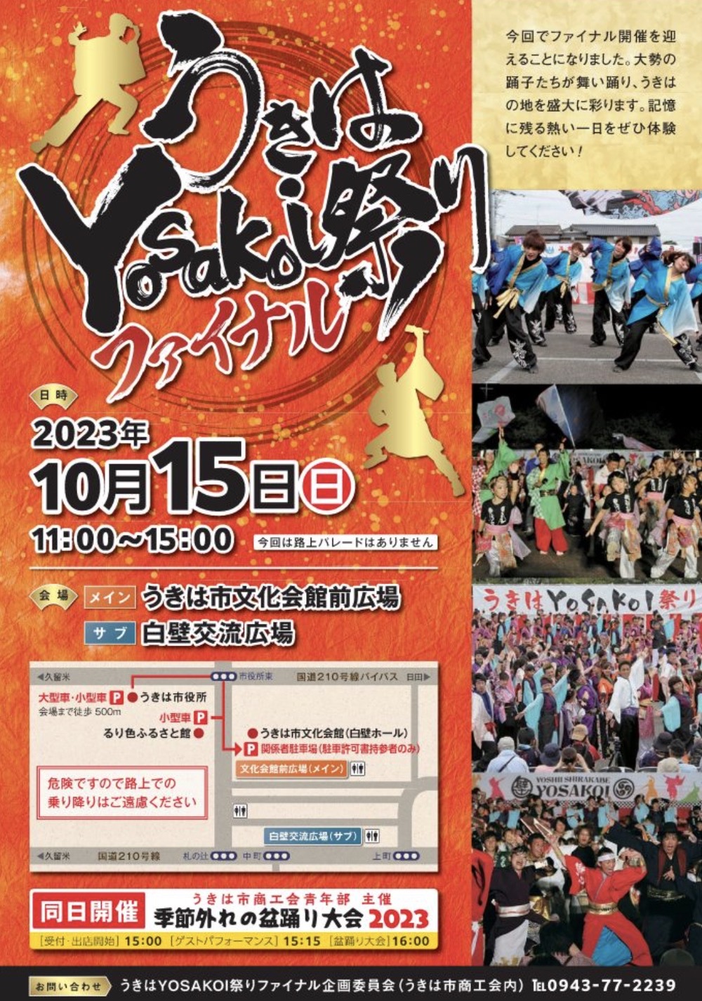 10月15日(日)に「うきはYOSAKOI祭りファイナル」が開催されます。